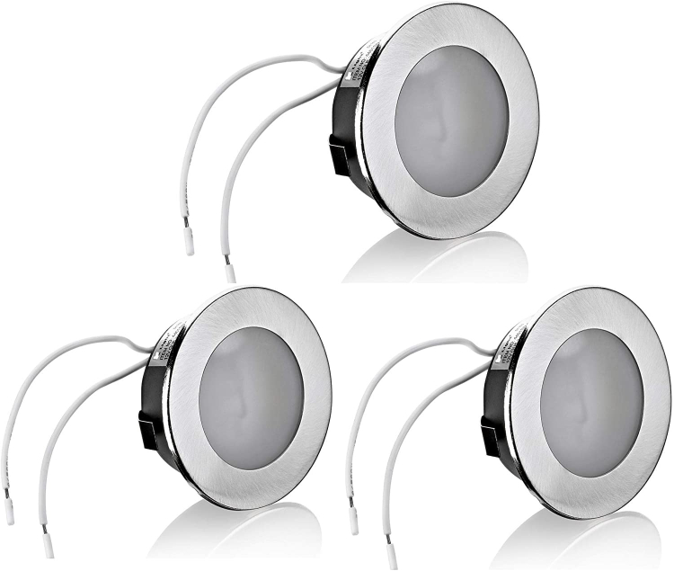 3x Möbel- Schrank Unterbau Einbaustrahler Eisengebürstet rund 12V G4 Sockel flach