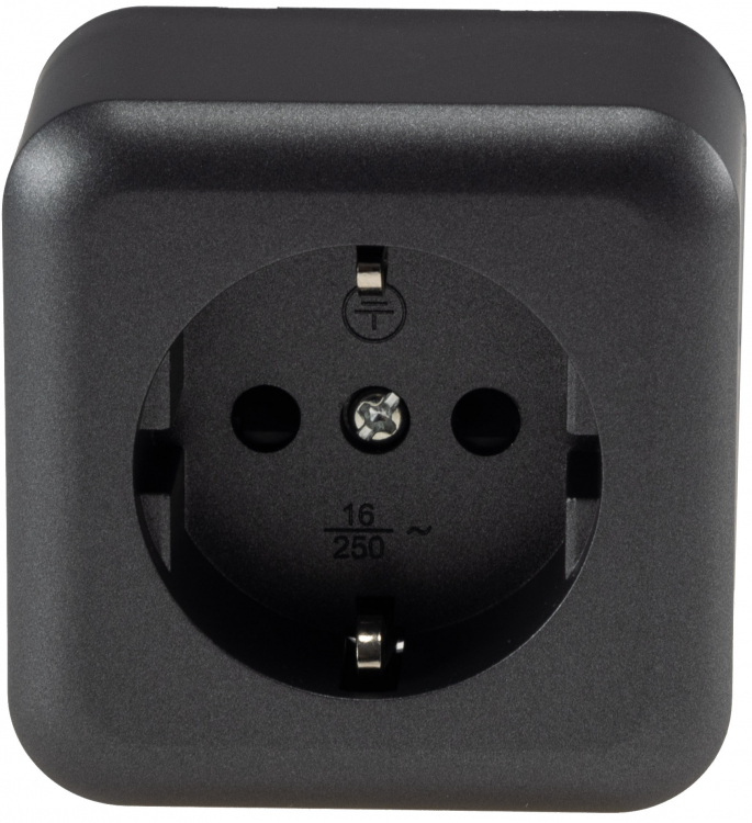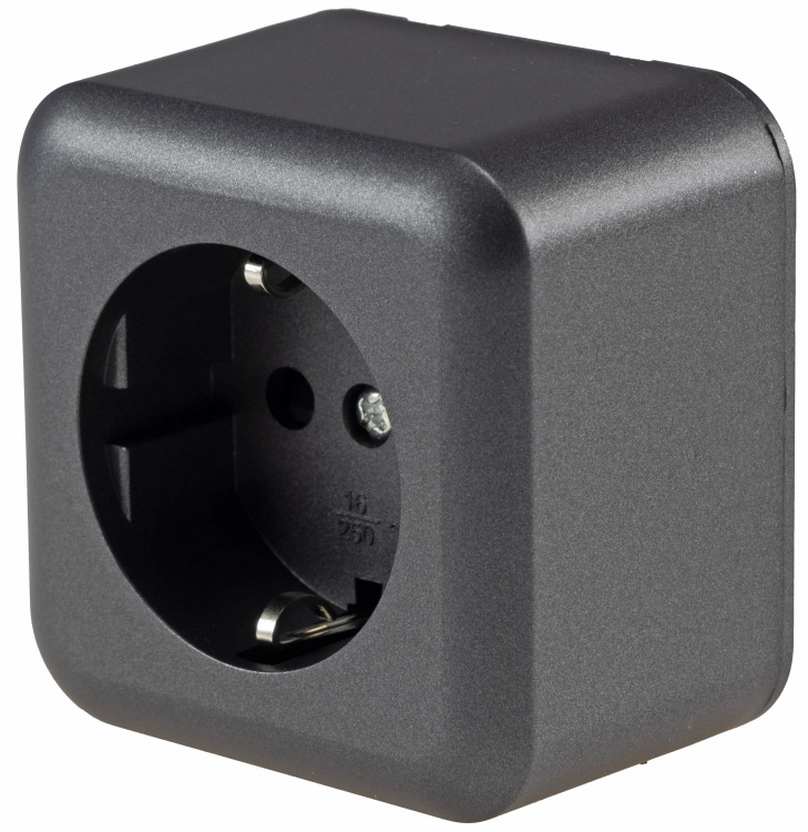 Aufputzsteckdose aus der FASKO Serie in anthraziter Optik für den Innenbereich. Einfache Aufbaumontage und Kabelinstallation per Schrauben. Ideal zum Nachrüsten an Orten wo eine Unterputz Installation nicht möglich ist.