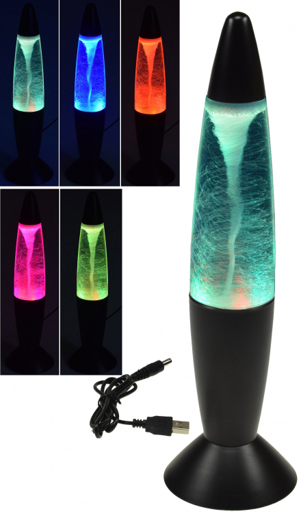 Diese Leuchte hat den "Dreh" raus! Elegante Tornado Leuchte mit dekorativer LED Farbwechsel-Beleuchtung peppt so manches Büro oder Wohnzimmer auf. Der Betrieb erfolgt über das mitgelieferte USB Kabel oder 3x Mignon Batterie.