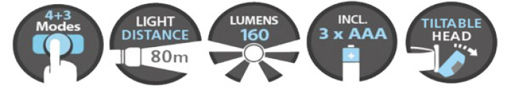 Kraftvolle 5W Kopflampe mit superheller CREE LED und bis zu 160 Lumen Helligkeit